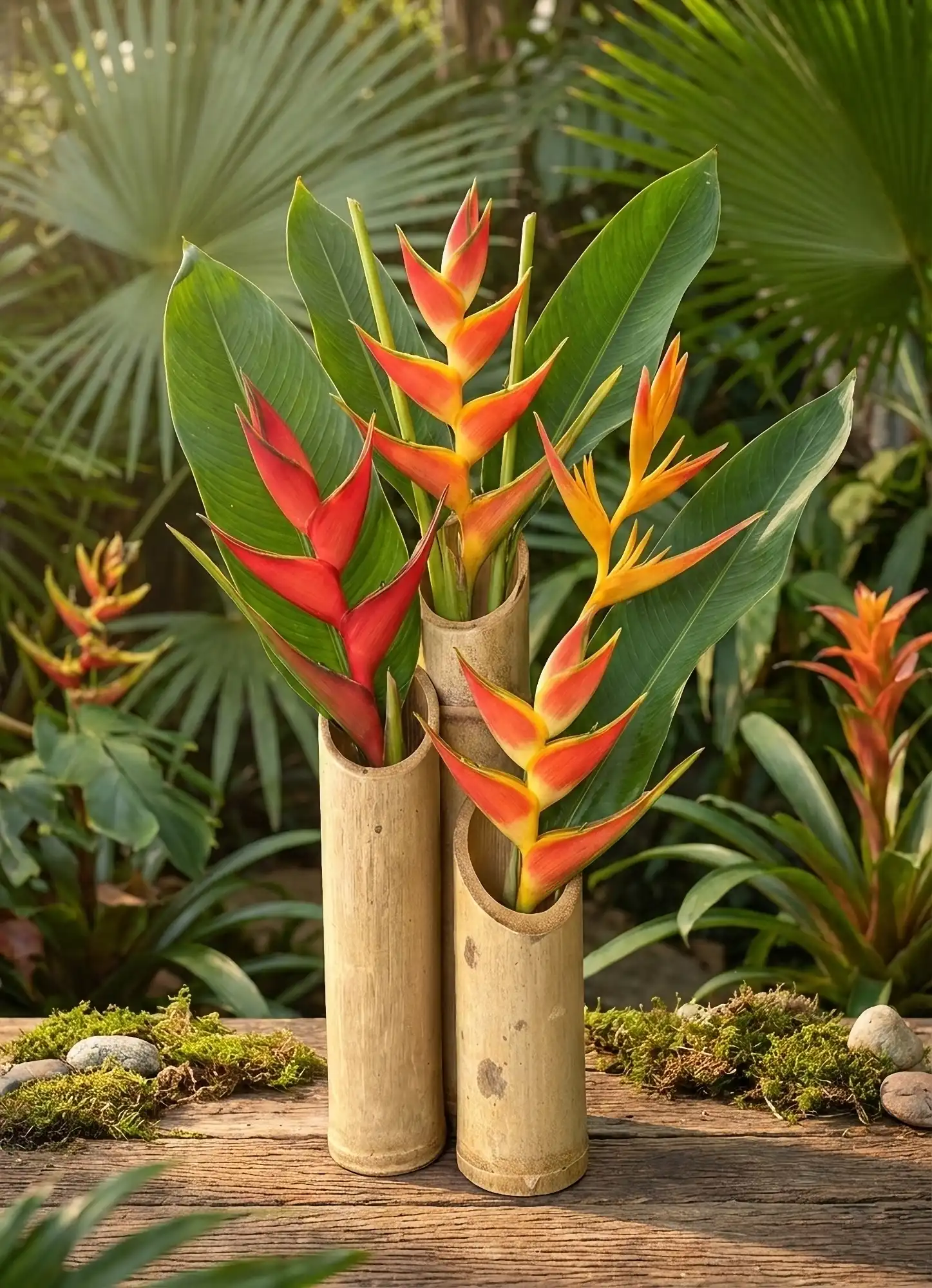 - Un Diseño con Personalidad: El corte diagonal es moderno y perfecto para que tus arreglos florales (¡imagina unas Heliconias!) se vean más dinámicos. Con las alturas de 20 cm, 30 cm y 40 cm, puedes crear un centro de mesa espectacular.