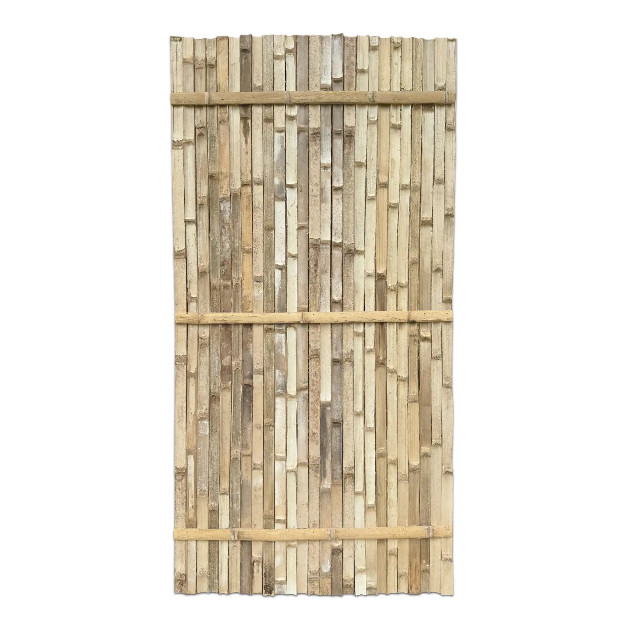 El Panel en Latas de Bambú Guadua es una excelente alternativa para quienes buscan la calidez del bambú con un acabado más geométrico y uniforme. A diferencia de nuestros paneles de esterilla, que conservan la forma natural y rústica de la planta, el panel de latas se compone de listones procesados de 4 cm de ancho, logrando una superficie simétrica y de gran resistencia estructural.